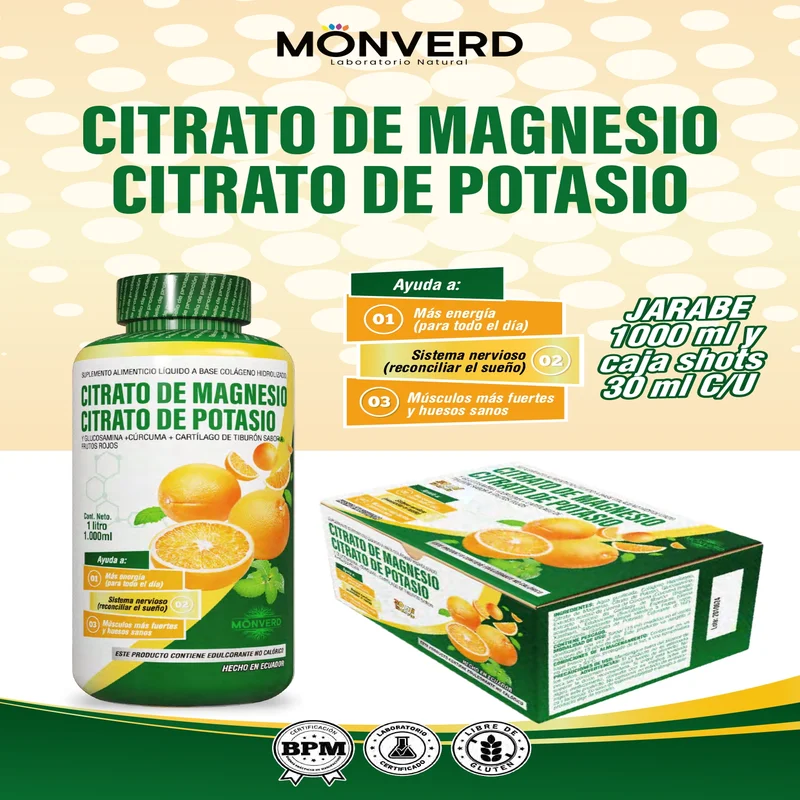 Este suplemento combina citrato de magnesio y citrato de potasio, dos minerales esenciales para el funcionamiento adecuado del cuerpo.