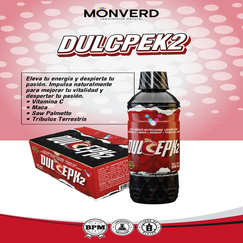 Dulce Pk2 es un suplemento natural diseñado para elevar la energía, mejorar el ánimo y estimular la vitalidad tanto en hombres como en mujeres.