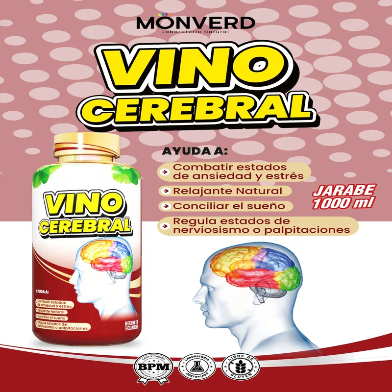 Vino Cerebral es un jarabe natural formulado para apoyar el equilibrio del sistema nervioso y mejorar la calidad de vida en personas con estrés, ansiedad o dificultad para dormir.